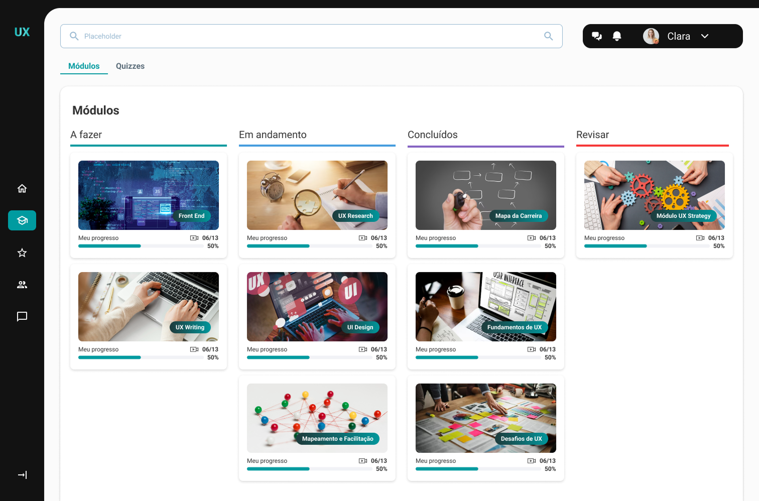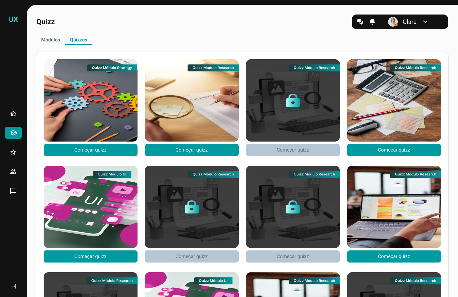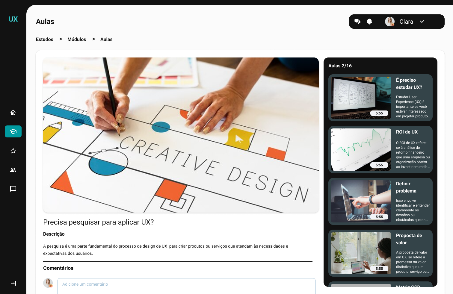 We created the persona Clara Santos, representing our main user: young professionals studying to change careers but facing difficulties in maintaining focus and motivation.